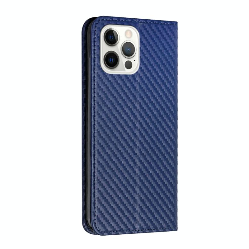 For iPhone 13 Pro Carbon Fiber Texture Flip Holder Leather Phone Case (Blue)