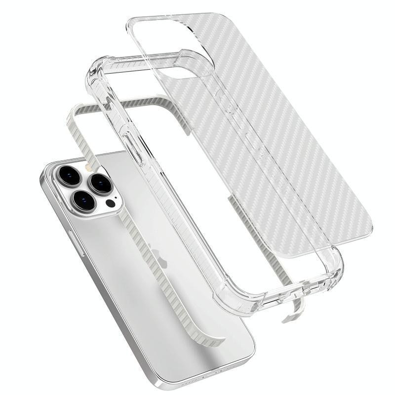 For iPhone 13 Pro Carbon Fiber Texture Four-corner Shockproof Phone Case (White)
