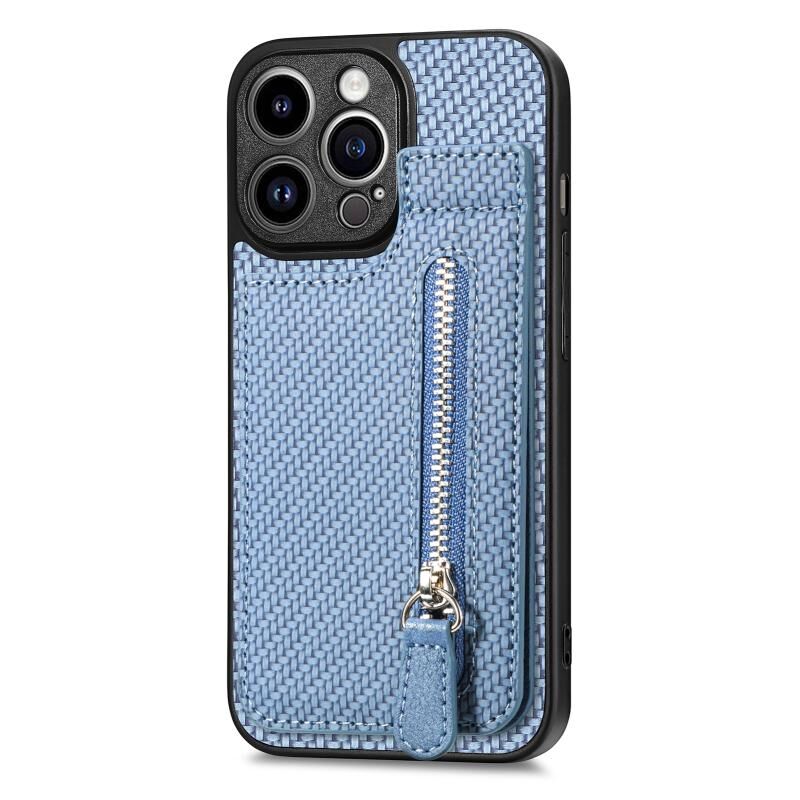 Θήκη τηλεφώνου κάθετης αναδίπλωσης με φερμουάρ από ανθρακονήματα για iPhone 13 Pro (Μαύρο)
