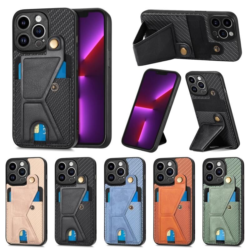 Θήκη κινητού τηλεφώνου για iPhone 13 Pro, από ανθρακονήματα, τύπου πορτοφολιού με κάρτες και σχήμα K (Μαύρο)