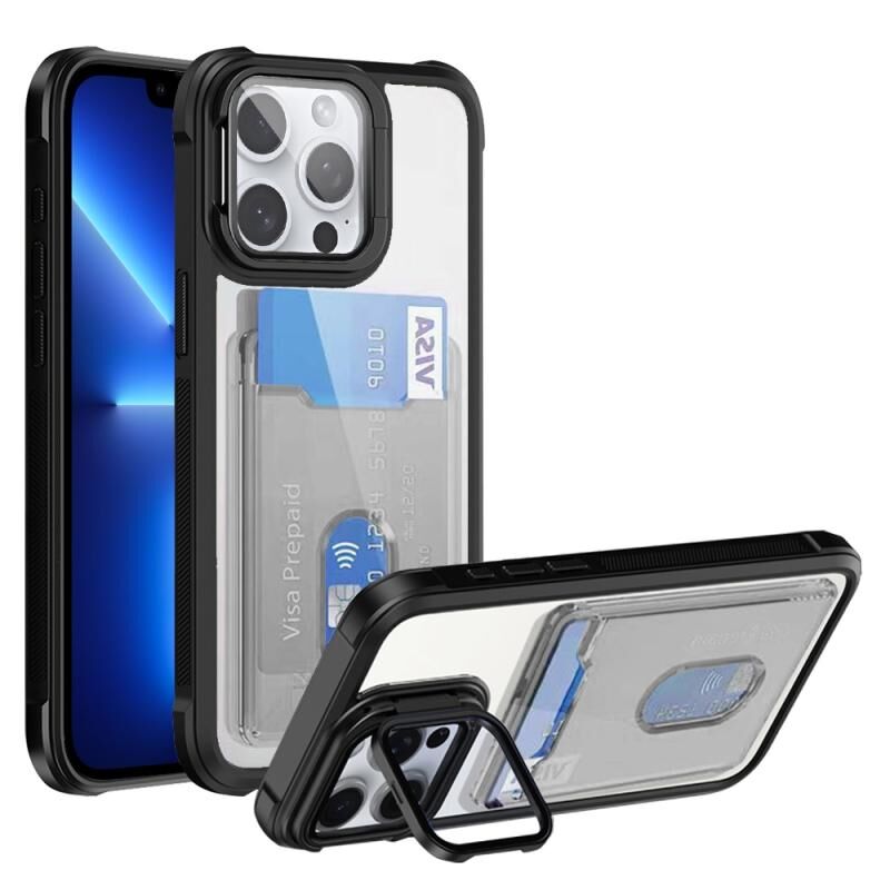 For iPhone 13 Pro Card Bag Holder Acrylic Hybrid TPU Phone Case(Black)