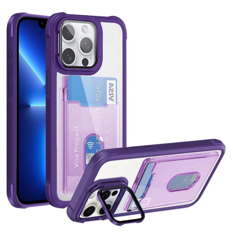 For iPhone 13 Pro Card Bag Holder Acrylic Hybrid TPU Phone Case(Purple)