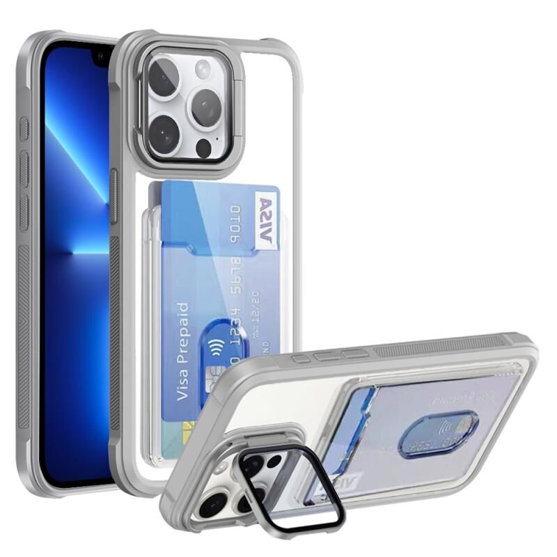 For iPhone 13 Pro Card Bag Holder Acrylic Hybrid TPU Phone Case(White)