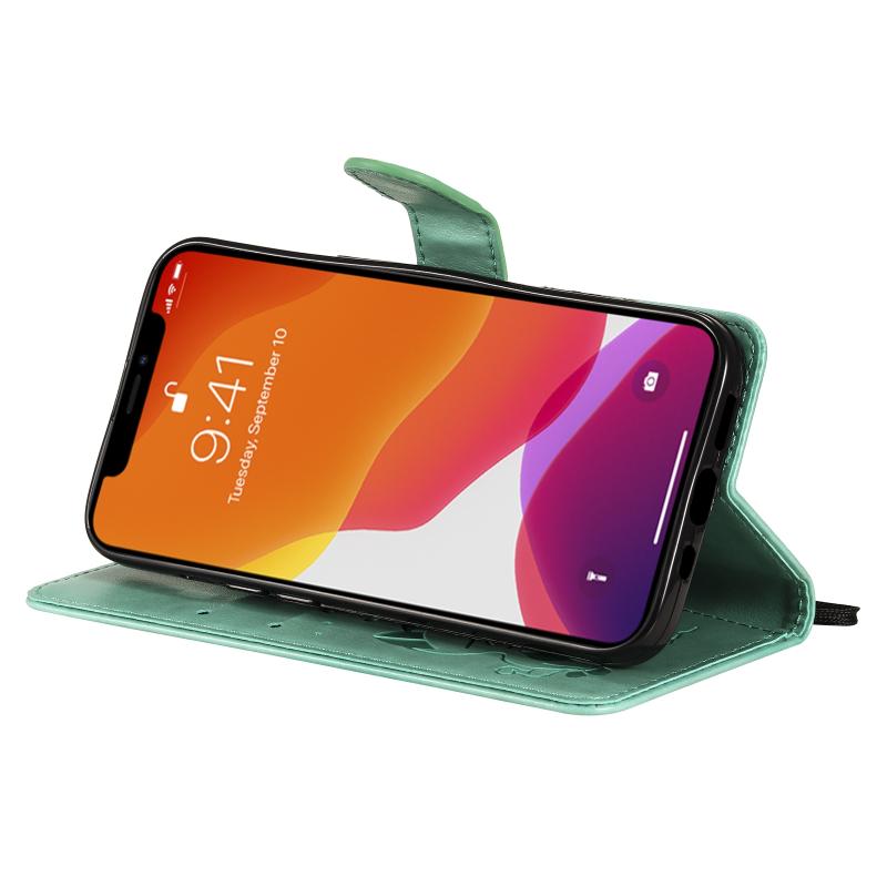 Θήκη δέρματος οριζόντιας αναδίπλωσης για iPhone 13 Pro με ανάγλυφο σχέδιο Γάτας και Μελισσών, αντικραδασμική, με βάση στήριξης & υποδοχές καρτών & πορτοφόλι (Χρυσό Ροζ)