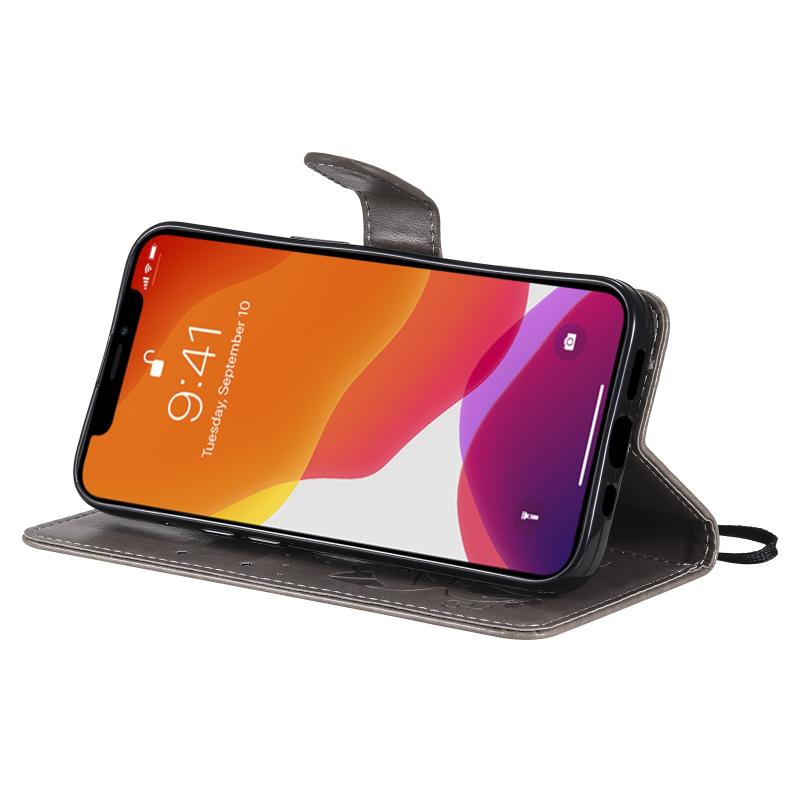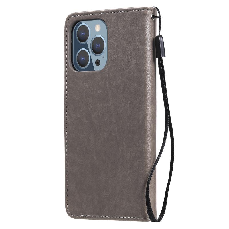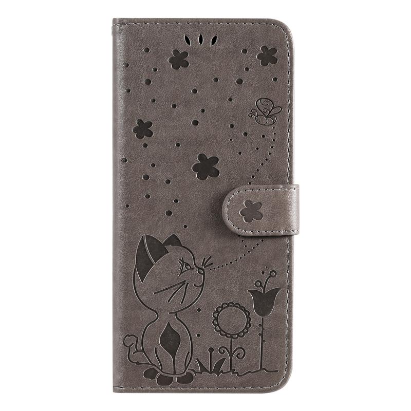 Θήκη δέρματος οριζόντιας αναδίπλωσης για iPhone 13 Pro με ανάγλυφο σχέδιο Γάτας και Μελισσών, αντικραδασμική, με βάση στήριξης & υποδοχές καρτών & πορτοφόλι (Χρυσό Ροζ)