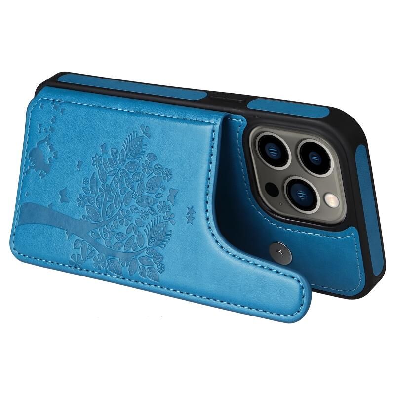Θήκη κινητού τηλεφώνου για iPhone 13 Pro με σχέδιο ανάγλυφου γατιού, αντικραδασμική (Μπλε)