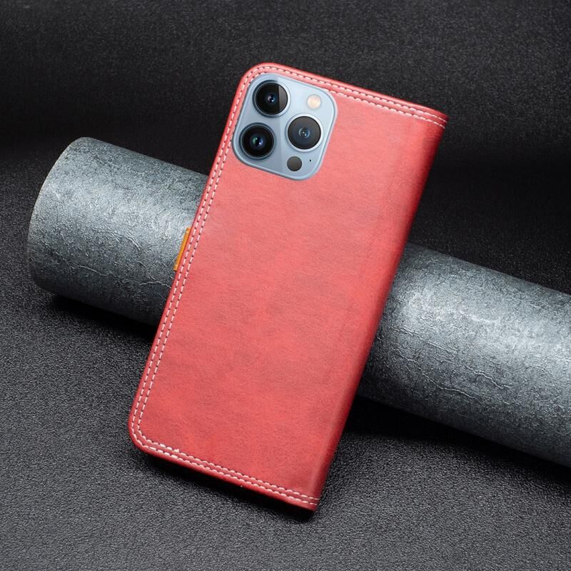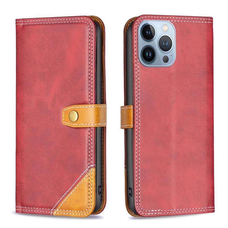 Θήκη δέρματος διπλής ραφής για iPhone 13 Pro σε χρώμα που ταιριάζει (Μαύρο)