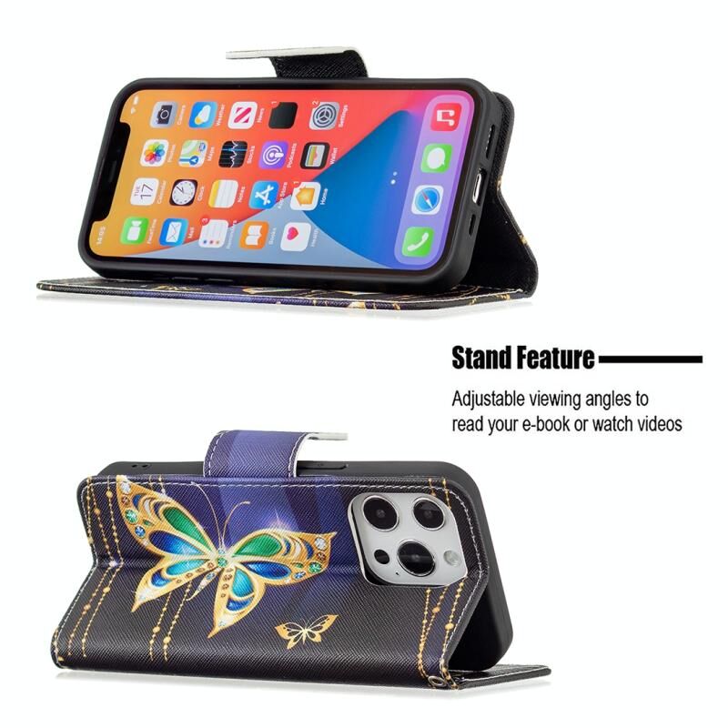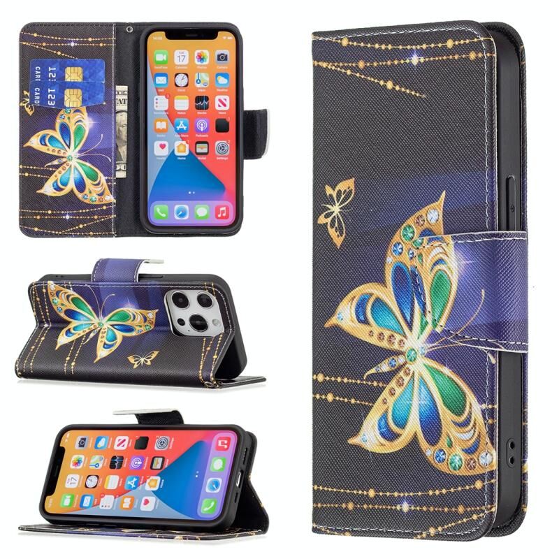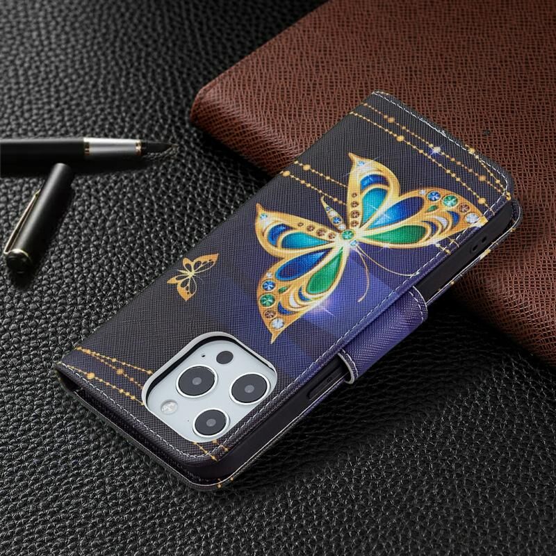 For iPhone 13 Pro Colored Drawing Pattern Horizontal Flip Leather Case with Holder & Card Slots & Wallet (Big Butterfly)