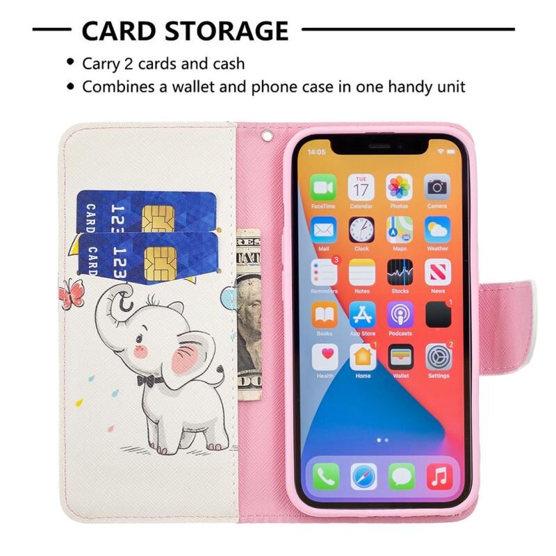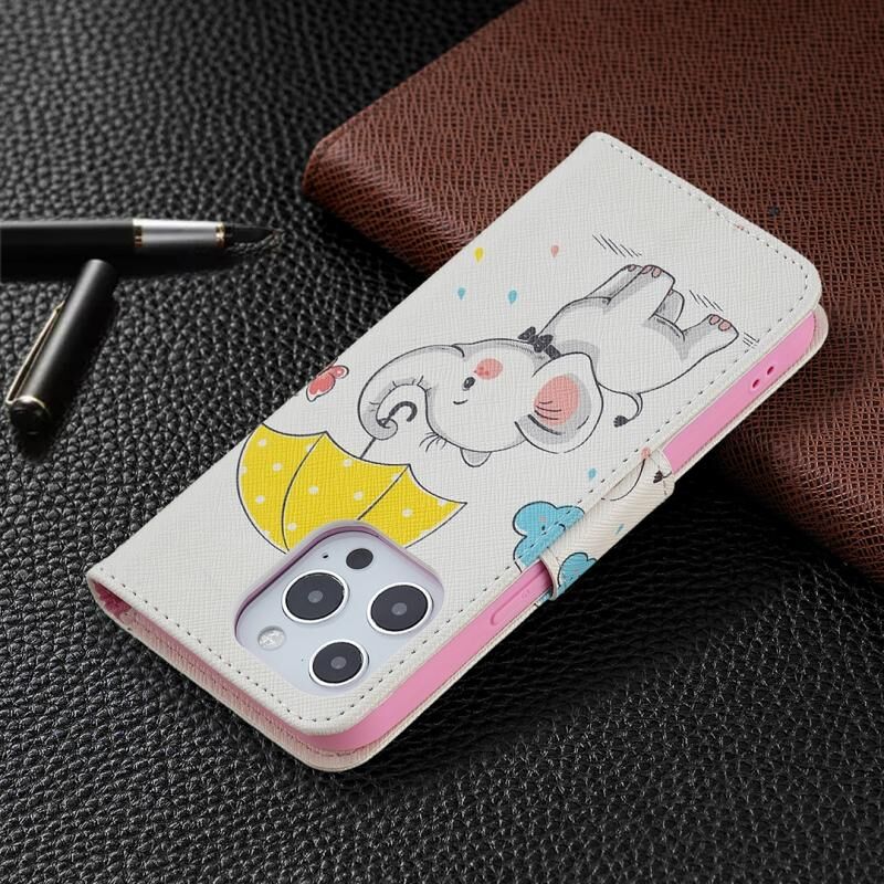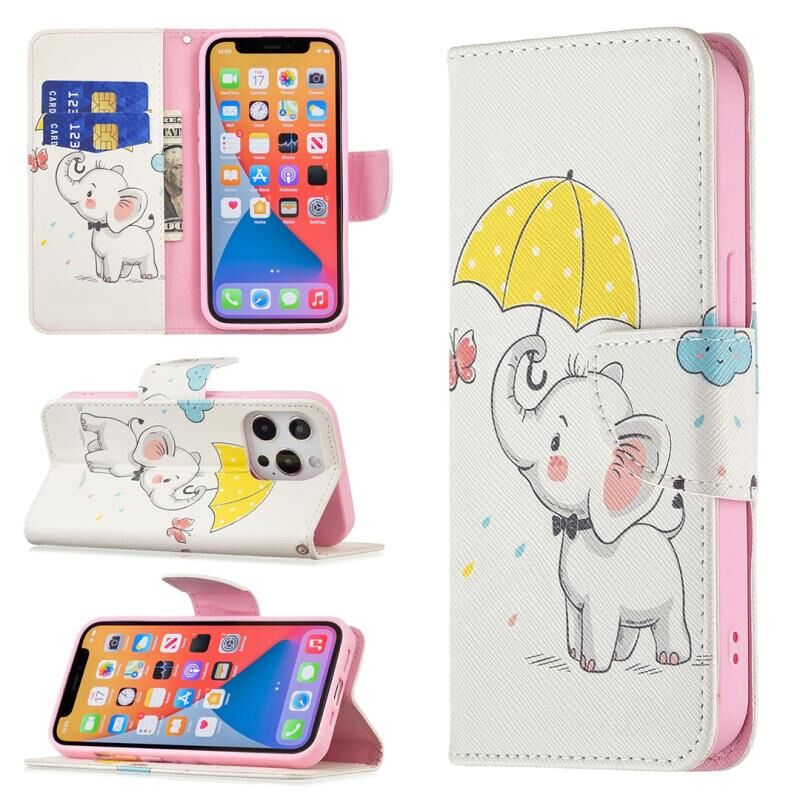 For iPhone 13 Pro Colored Drawing Pattern Horizontal Flip Leather Case with Holder & Card Slots & Wallet (Elephant)
