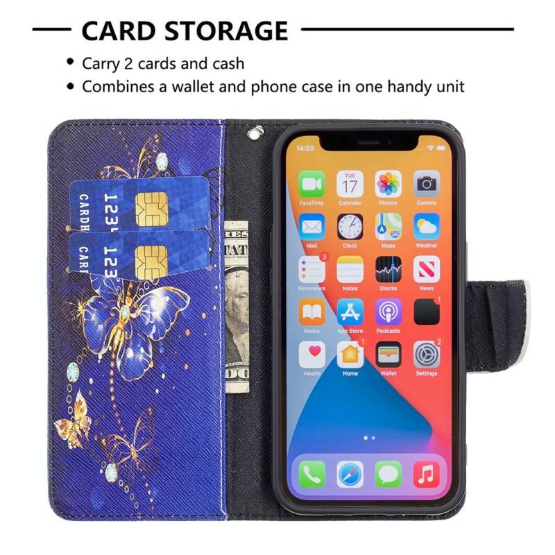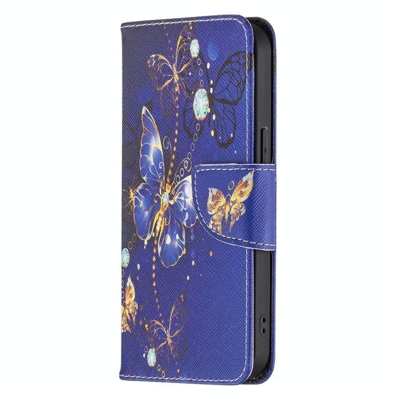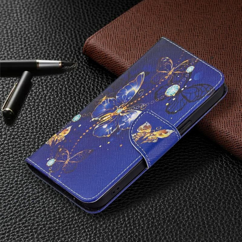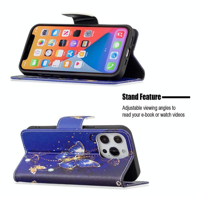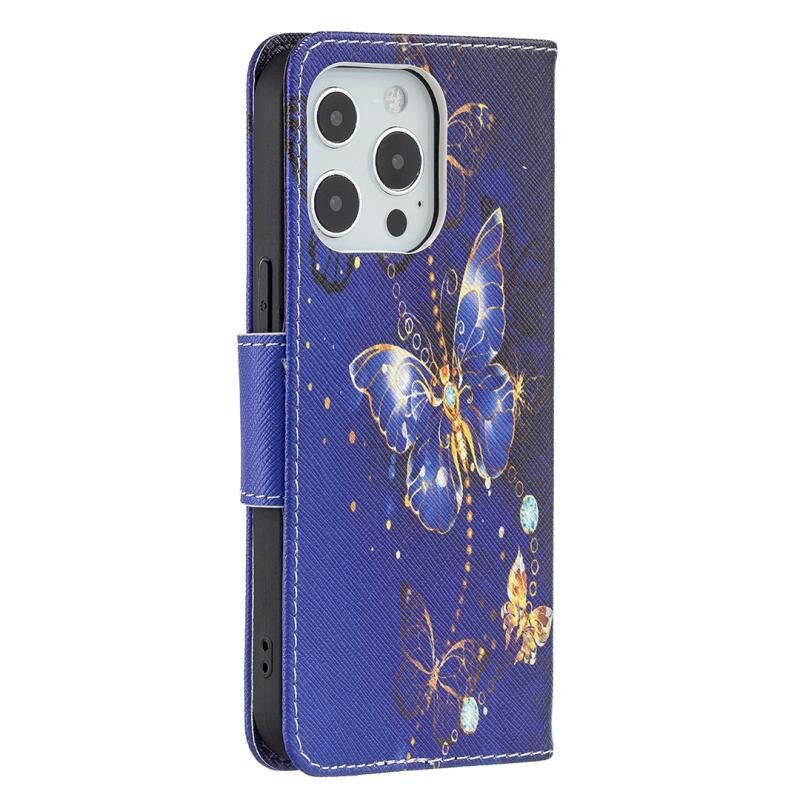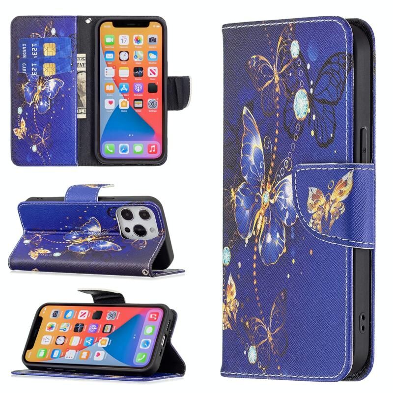 For iPhone 13 Pro Colored Drawing Pattern Horizontal Flip Leather Case with Holder & Card Slots & Wallet (Purple Butterfly)