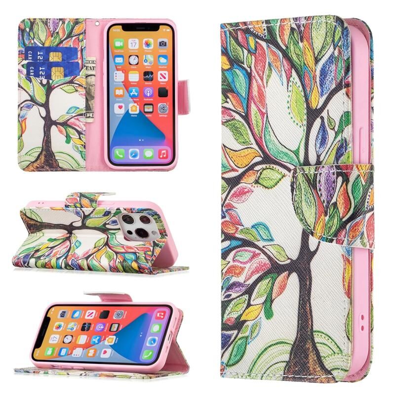 For iPhone 13 Pro Colored Drawing Pattern Horizontal Flip Leather Case with Holder & Card Slots & Wallet (Tree of Life)