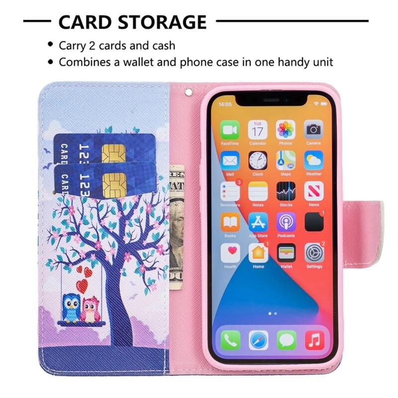 For iPhone 13 Pro Colored Drawing Pattern Horizontal Flip Leather Case with Holder & Card Slots & Wallet (Two Owls)