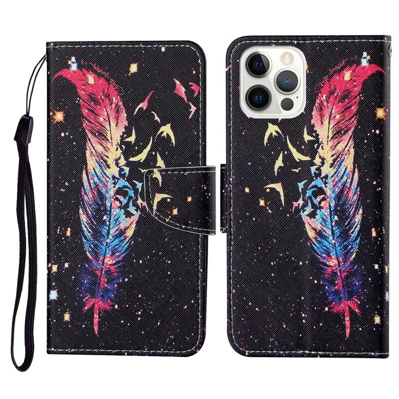Θήκη τηλεφώνου δερμάτινη οριζόντιας αναδίπλωσης με σχέδιο έγχρωμης ζωγραφικής για iPhone 13 Pro (Φτερό)