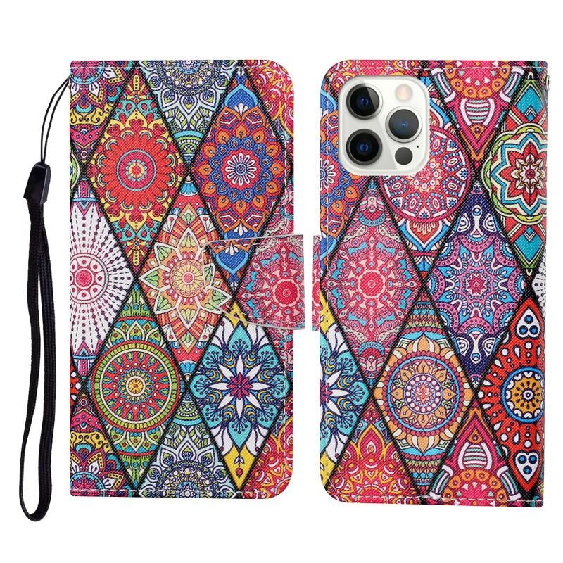 Θήκη τηλεφώνου δερμάτινη οριζόντιας αναδίπλωσης για iPhone 13 Pro με έγχρωμο σχέδιο (Ρόμβος Τότεμ)
