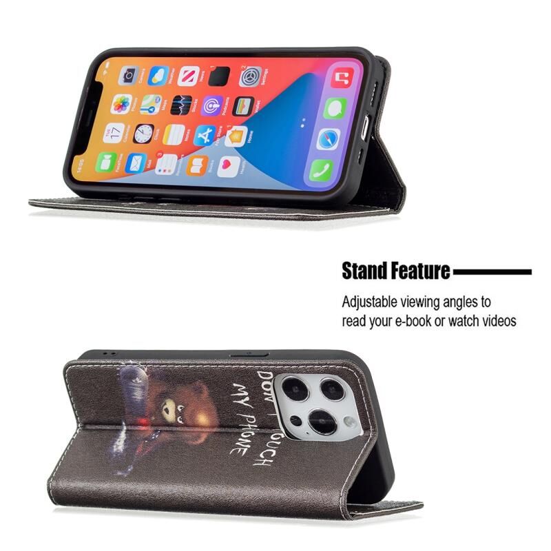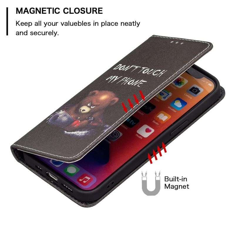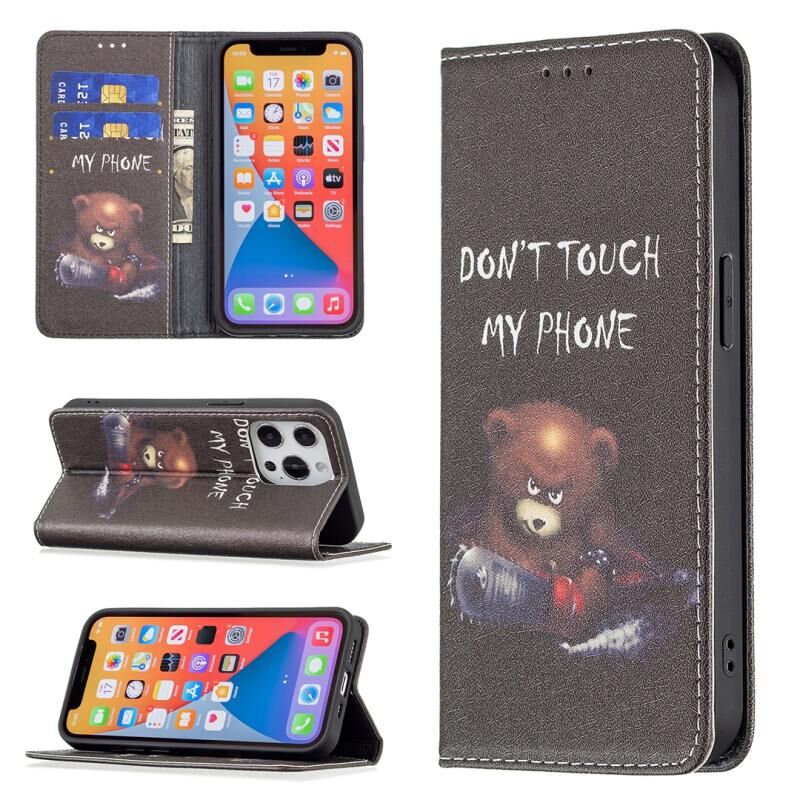 For iPhone 13 Pro Colored Drawing Pattern Invisible Magnetic Horizontal Flip PU Leather Case with Holder & Card Slots & Wallet (Bear)