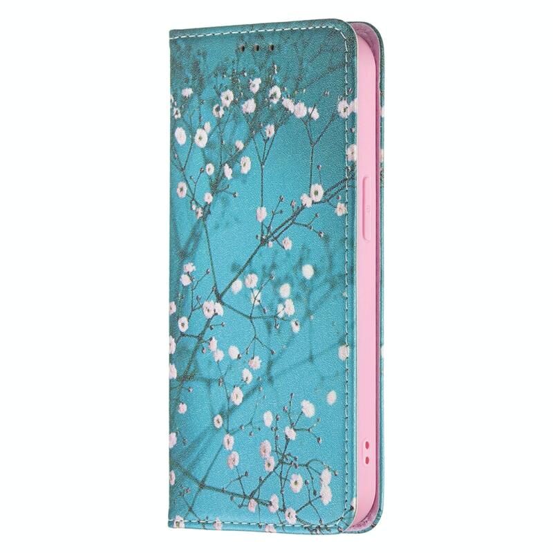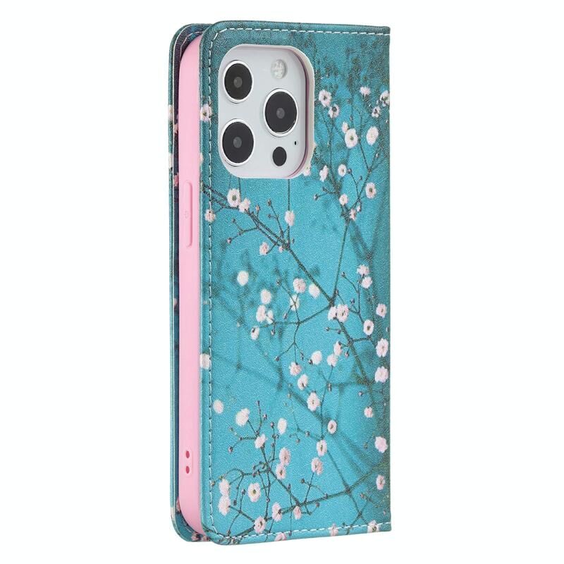 For iPhone 13 Pro Colored Drawing Pattern Invisible Magnetic Horizontal Flip PU Leather Case with Holder & Card Slots & Wallet (Plum Blossom)