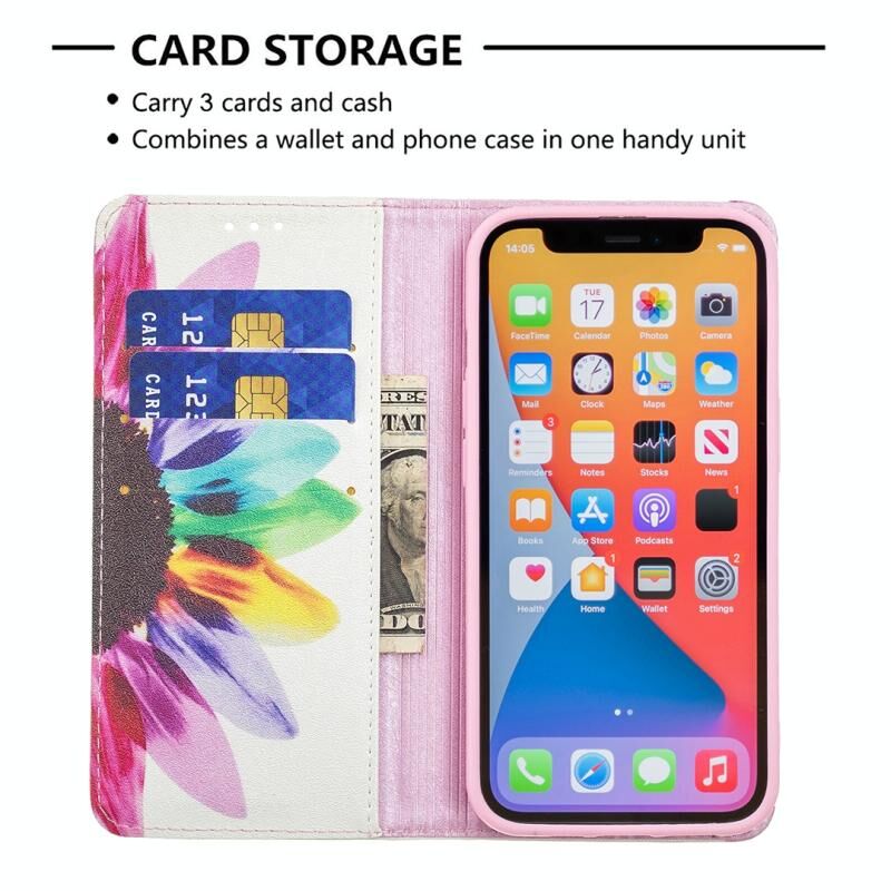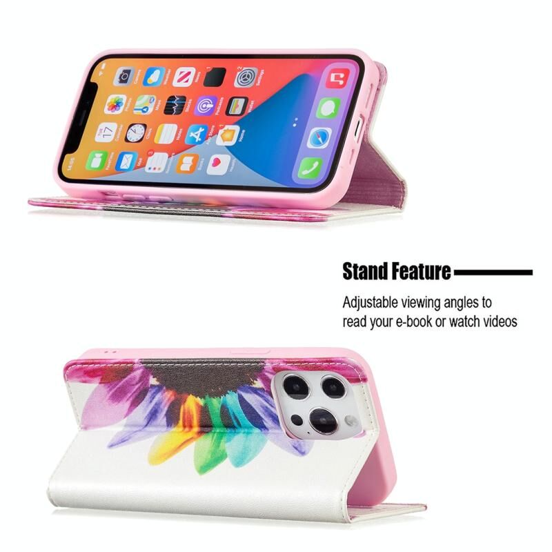 For iPhone 13 Pro Colored Drawing Pattern Invisible Magnetic Horizontal Flip PU Leather Case with Holder & Card Slots & Wallet (Sun Flower)
