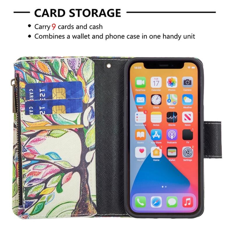 For iPhone 13 Pro Colored Drawing Pattern Zipper Horizontal Flip Leather Case with Holder & Card Slots & Wallet (Tree)