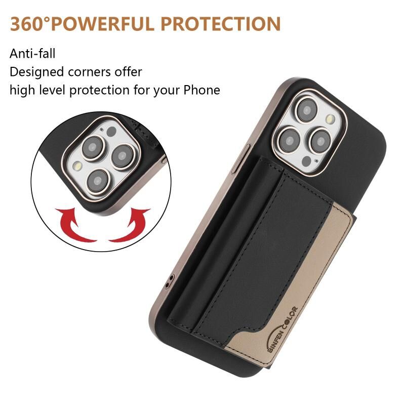 For iPhone 13 Pro Colour Matching Horizontal Magnetic Card Bag RFID MagSafe Phone Case(Black)