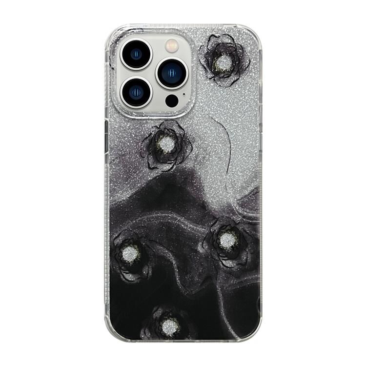 For iPhone 13 Pro Cooling Flash Feather TPU + PC Phone Case(Ink Rose)