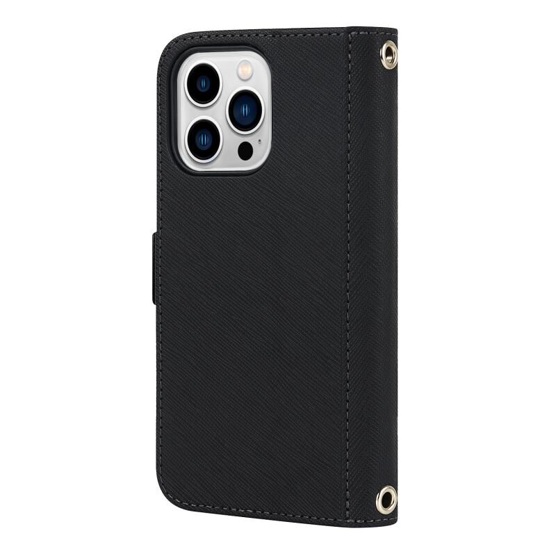 Θήκη τηλεφώνου από δέρμα με λουρί Cross Texture για iPhone 13 Pro (Μαύρο)