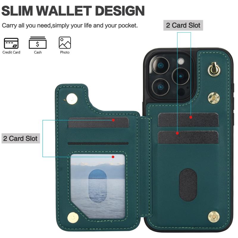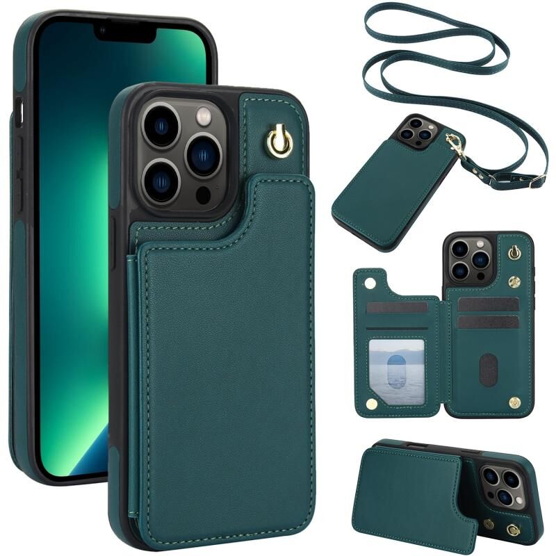 For iPhone 13 Pro Crossbody Dual-Buckle Wallet Back Leather Phone Case(Green)