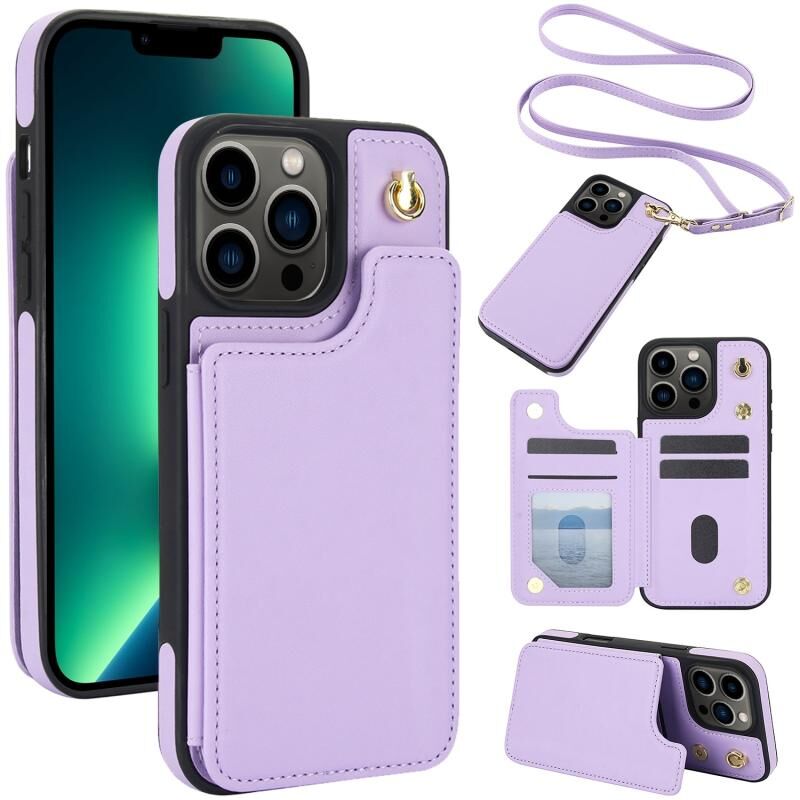 For iPhone 13 Pro Crossbody Dual-Buckle Wallet Back Leather Phone Case(Light Purple)