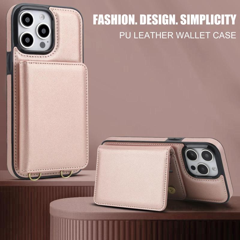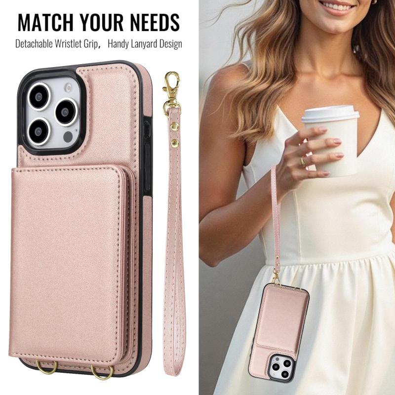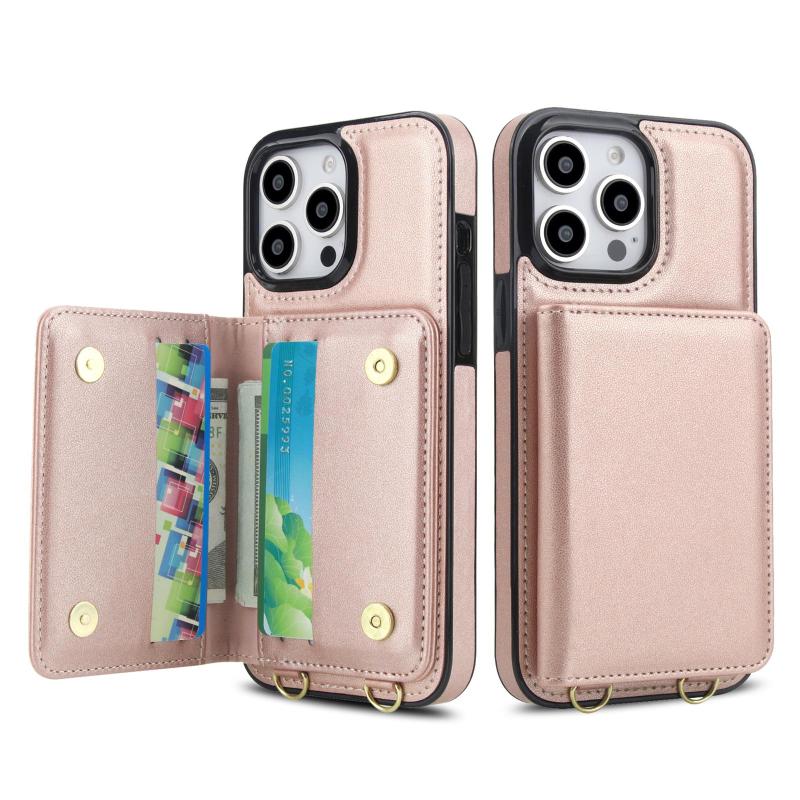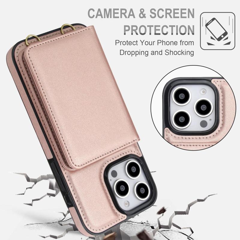 For iPhone 13 Pro Crossbody Dual-buckle Wallet RFID Back Leather Phone Case(Rose Gold)