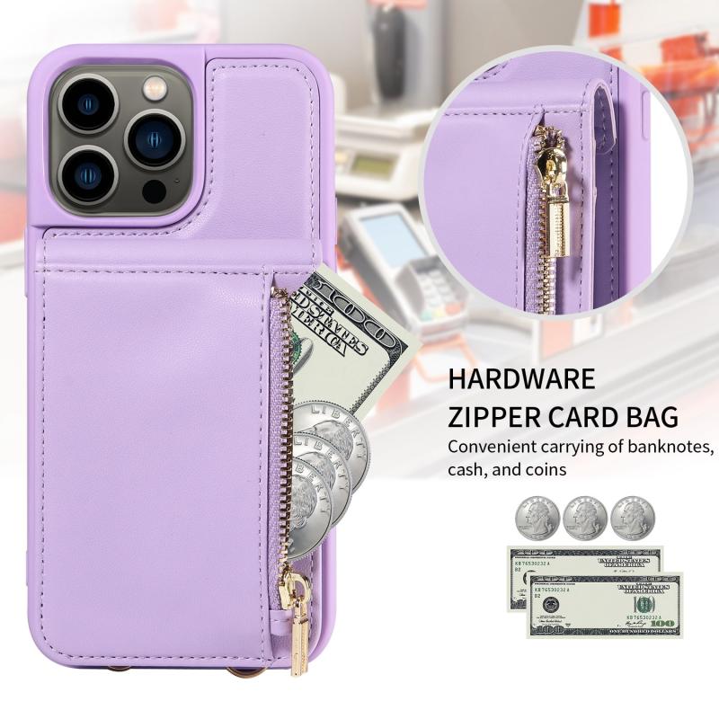 For iPhone 13 Pro Crossbody Lanyard Zipper Wallet Leather Phone Case(Purple)