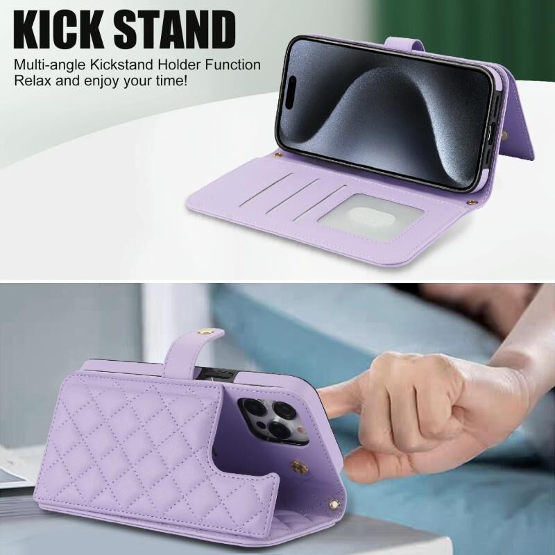Θήκη τηλεφώνου για iPhone 13 Pro, πολυλειτουργική, δερμάτινη με ρόμβους, σε χρώμα ροζ χρυσό.