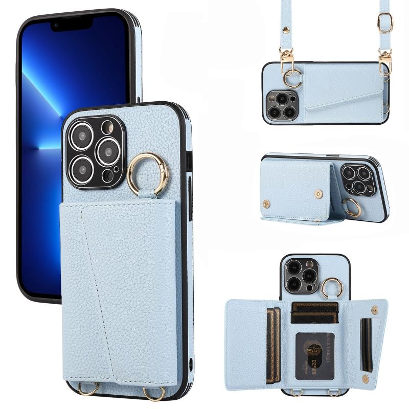 Θήκη κινητού τηλεφώνου για iPhone 13 Pro, δερμάτινη θήκη πλάτης με δακτύλιο και θήκη για κάρτες (Μπλε)