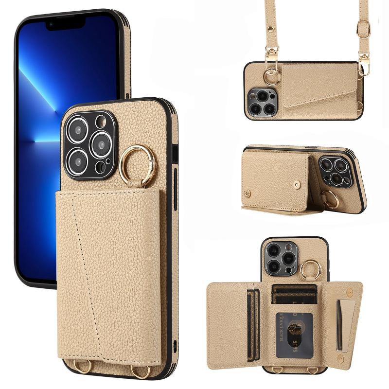 For iPhone 13 Pro Crossbody Ring Wallet Leather Back Cover Phone Case(Brown)