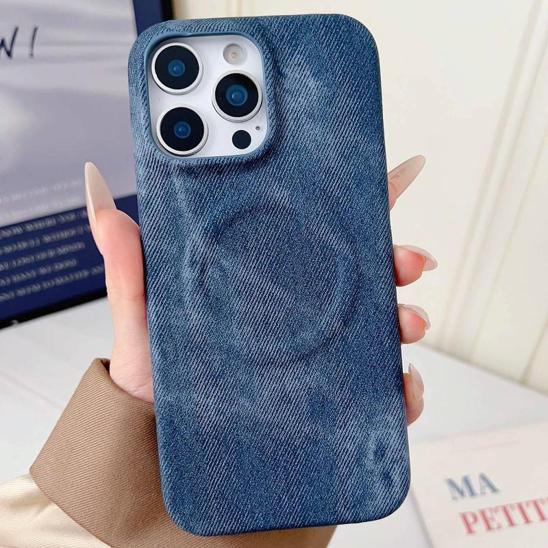 For iPhone 13 Pro Denim MagSafe Magnetic PC + PU Phone Case(Dark Blue)
