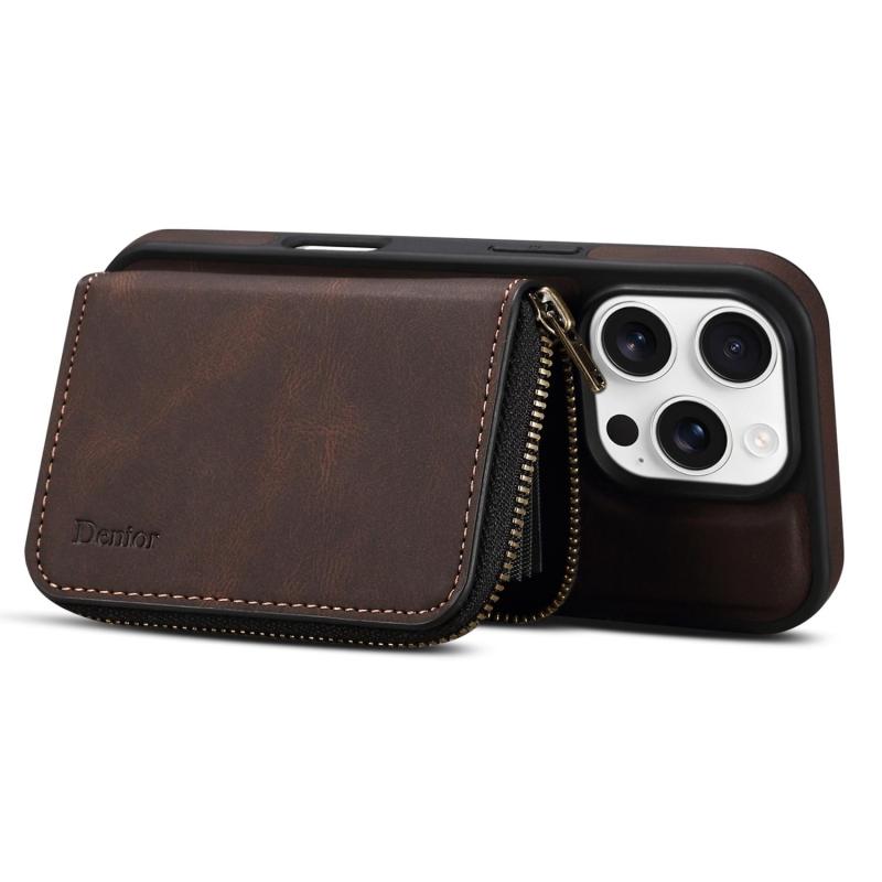 For iPhone 13 Pro Denior D26 Skin Feel MagSafe Zipper Bag Leather Phone Case(Coffee) (Denior)