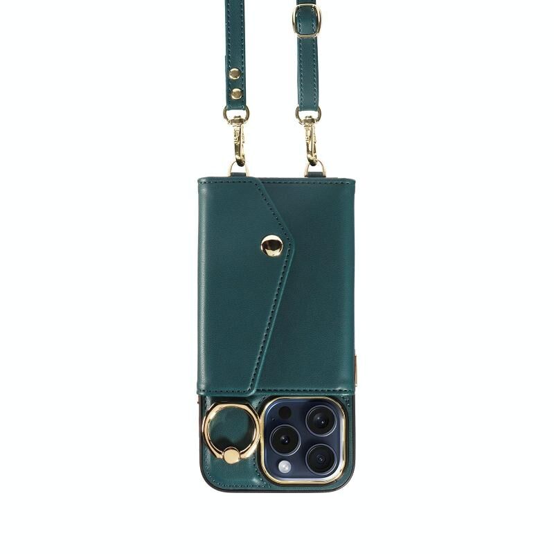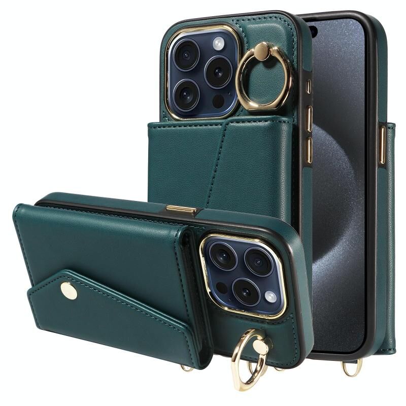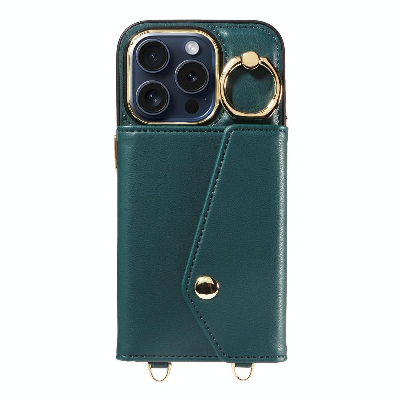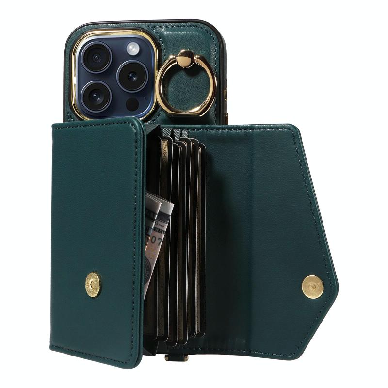 For iPhone 13 Pro Diagonal Crossbody Ring Organ Wallet Leather Back Phone Case(Dark Green)