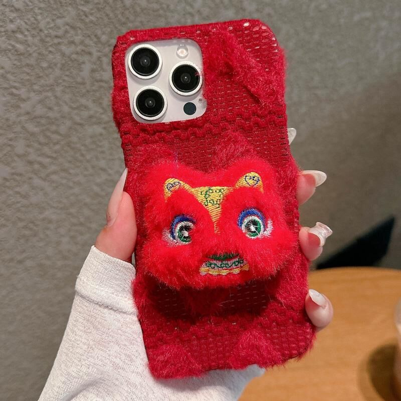 For iPhone 13 Pro Doll Plush PU Hybrid PC Phone Case(Red)