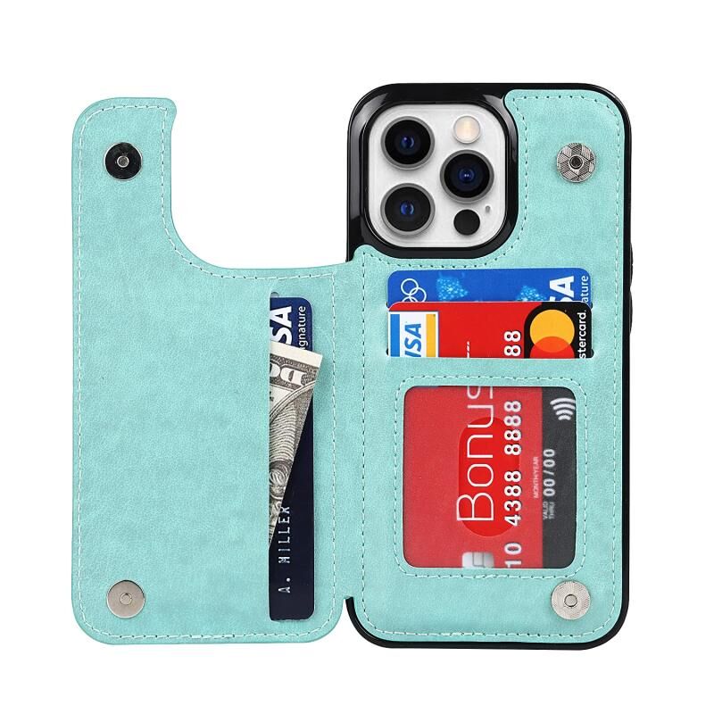 For iPhone 13 Pro Double Buckle Mandala Leather Back Case with Card Slots & Holder & Photo Frame(Green)