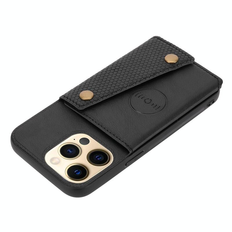 For iPhone 13 Pro Double Buckle PU + TPU Shockproof Magnetic Protective Case with Card Slot & Holder (Black)