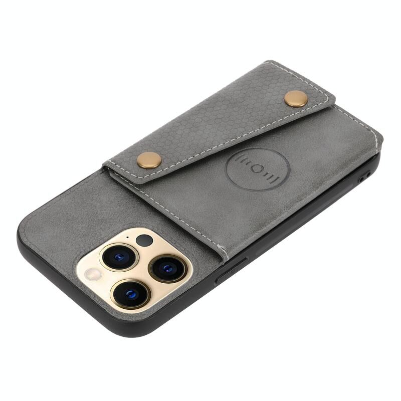 For iPhone 13 Pro Double Buckle PU + TPU Shockproof Magnetic Protective Case with Card Slot & Holder (Grey)
