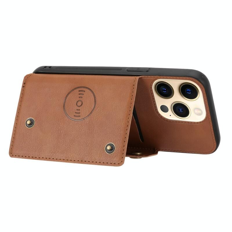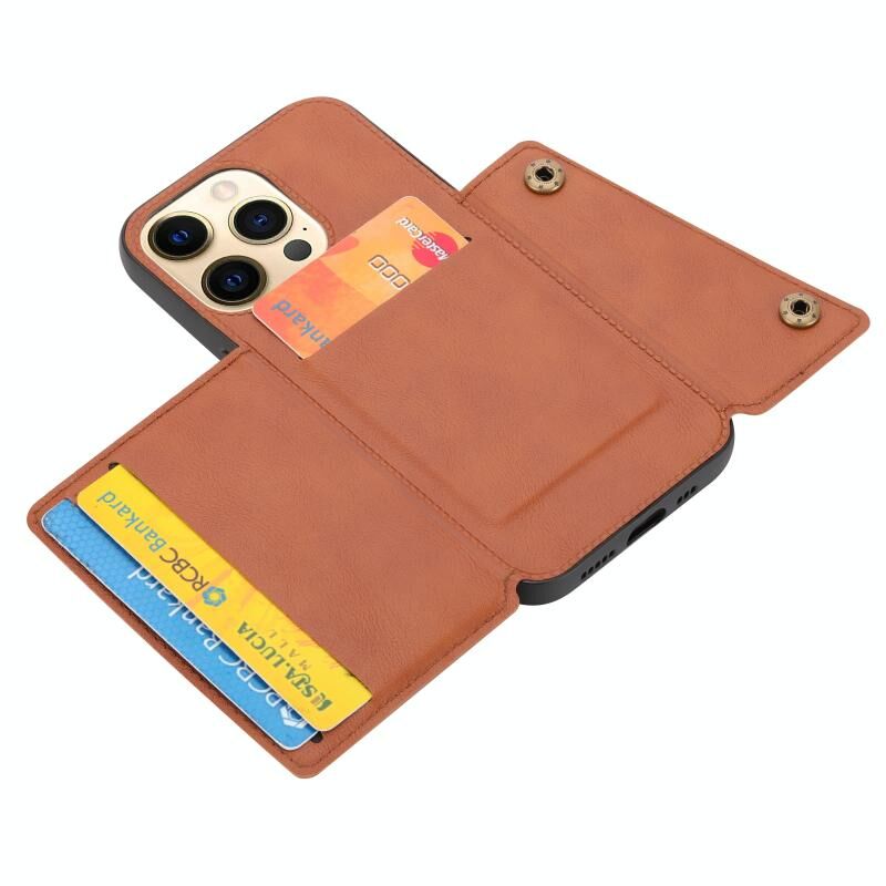 For iPhone 13 Pro Double Buckle PU + TPU Shockproof Magnetic Protective Case with Card Slot & Holder (Light Brown)