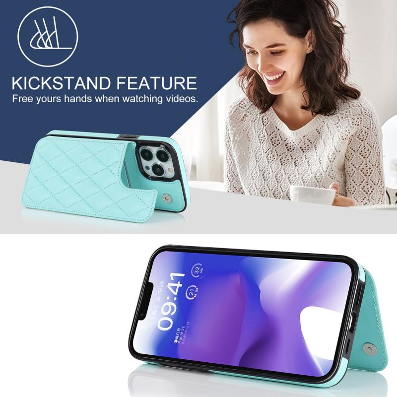For iPhone 13 Pro Double Buckle Rhombic PU Leather Phone Case(Blue)