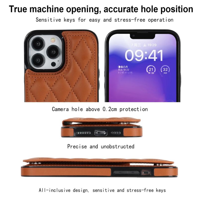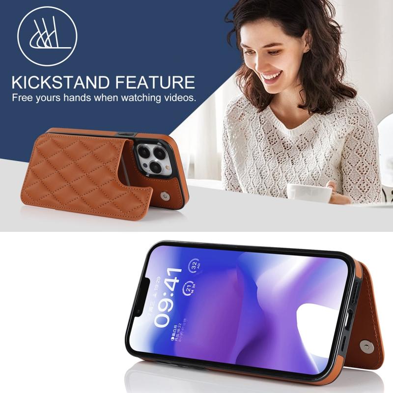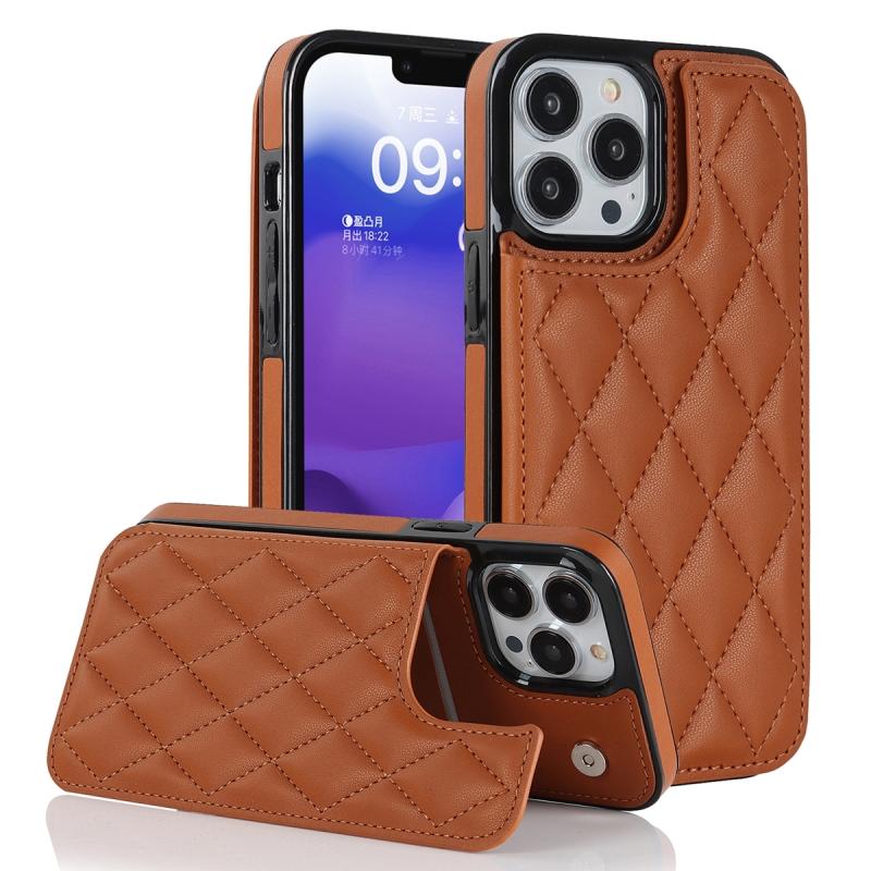 For iPhone 13 Pro Double Buckle Rhombic PU Leather Phone Case(Brown)