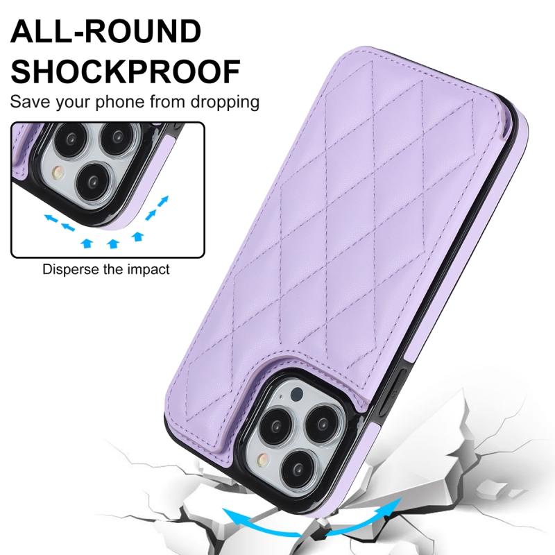 For iPhone 13 Pro Double Buckle Rhombic PU Leather Phone Case(Purple)