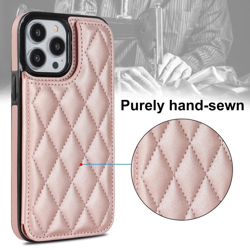 For iPhone 13 Pro Double Buckle Rhombic PU Leather Phone Case(Rose Gold)