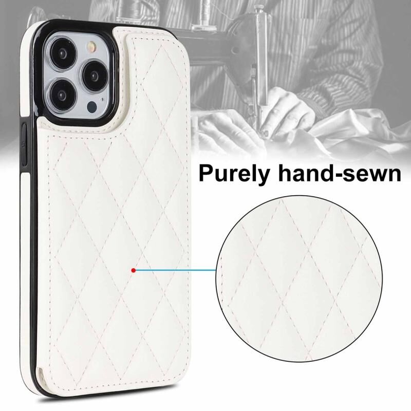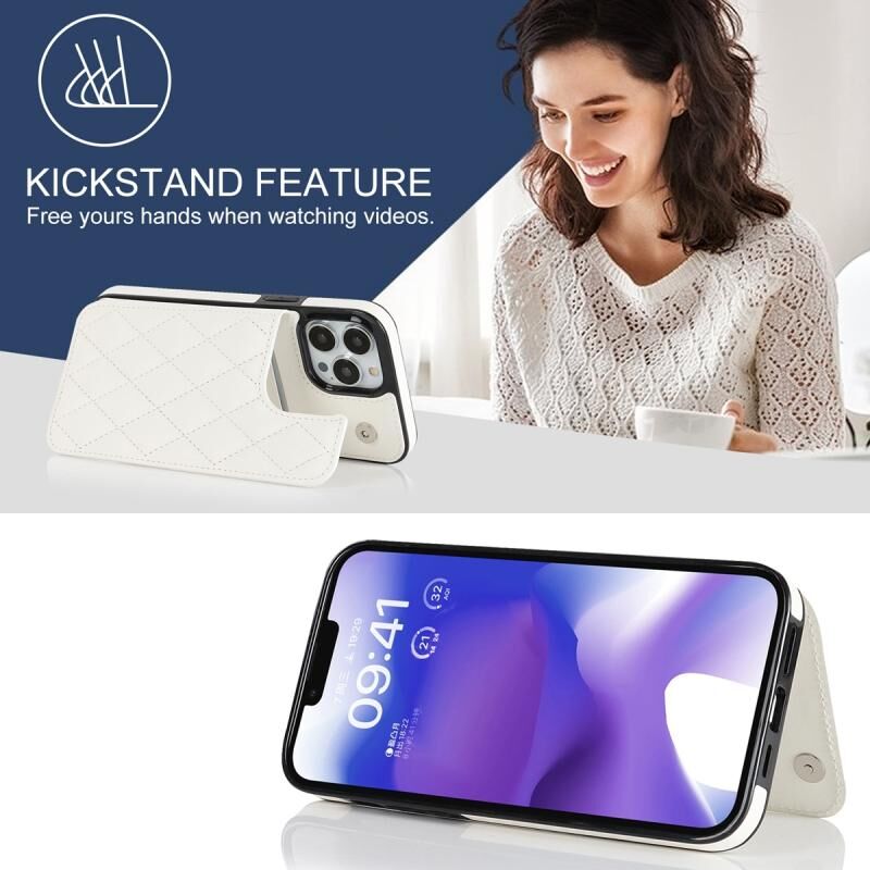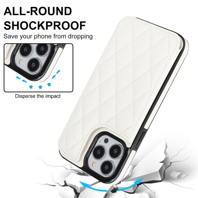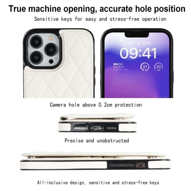 For iPhone 13 Pro Double Buckle Rhombic PU Leather Phone Case(White)