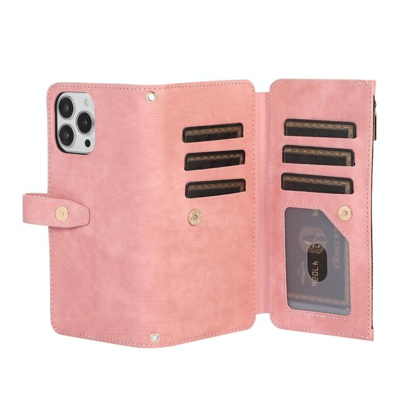 For iPhone 13 Pro Dream 9-Card Wallet Zipper Bag Leather Phone Case(Pink)