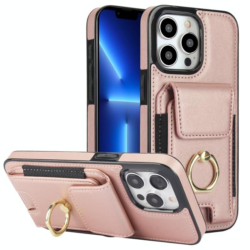 Θήκη τηλεφώνου για iPhone 13 Pro με ελαστική θήκη καρτών και δακτύλιο στήριξης (Μαύρο)