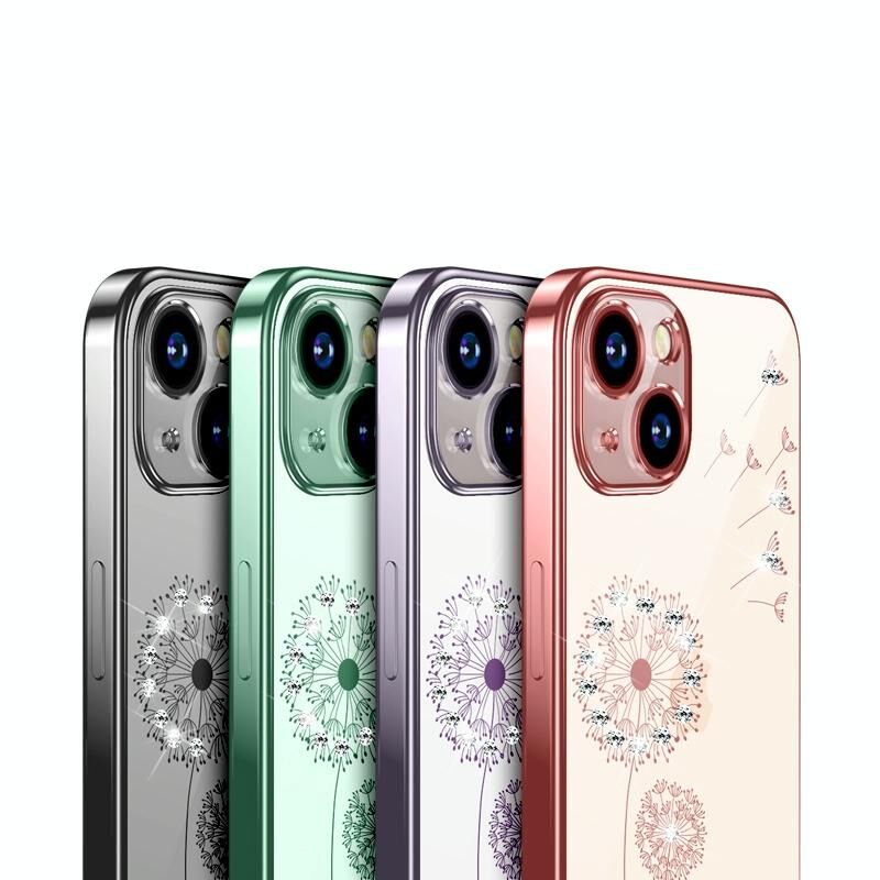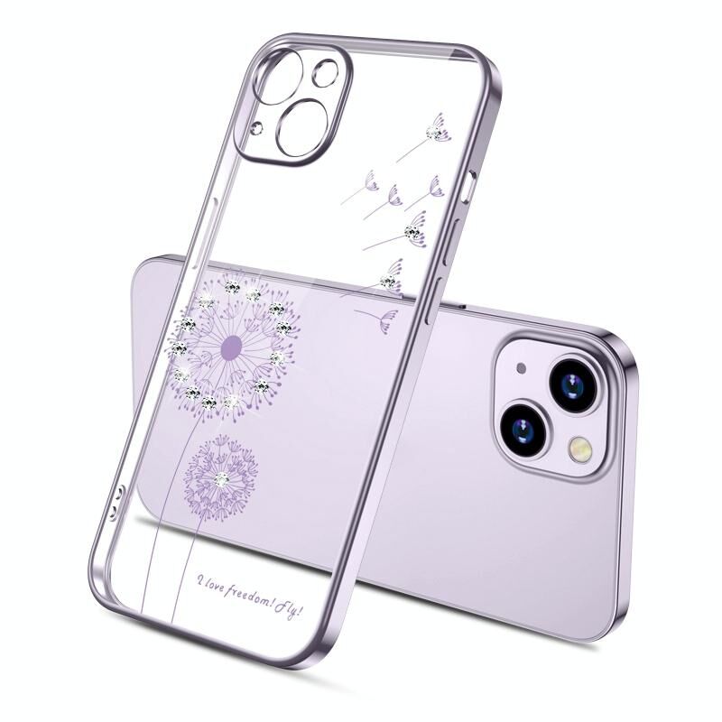 For iPhone 13 Pro Electroplating Diamond Dandelion Pattern TPU Shockproof Protective Case (Purple)