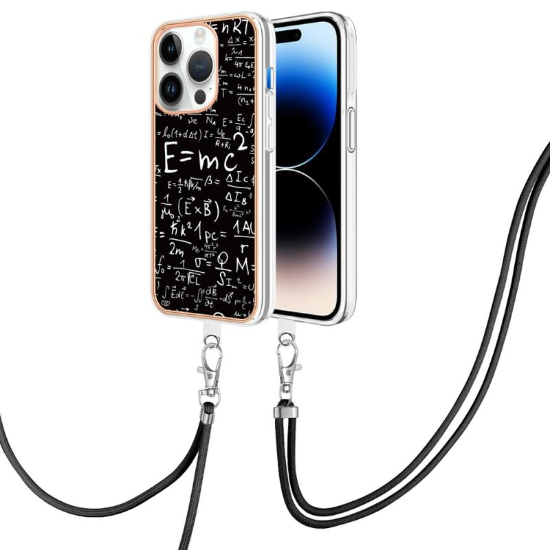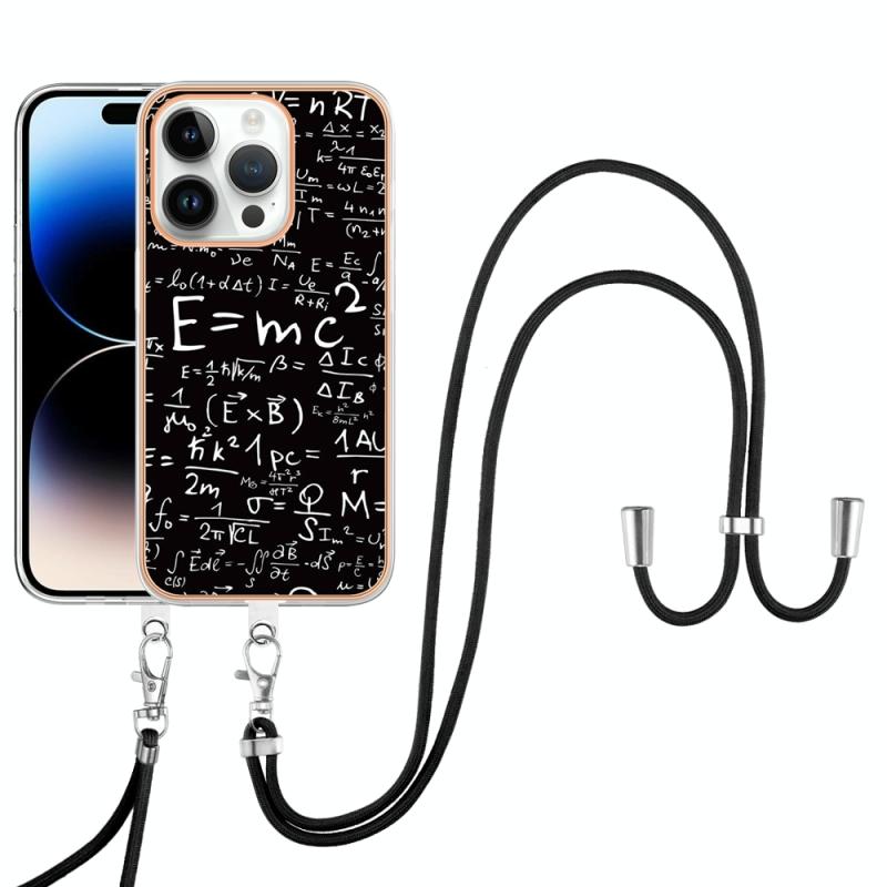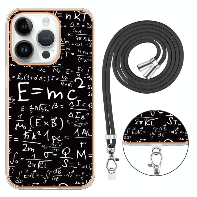 For iPhone 13 Pro Electroplating Dual-side IMD Phone Case with Lanyard(Equation)