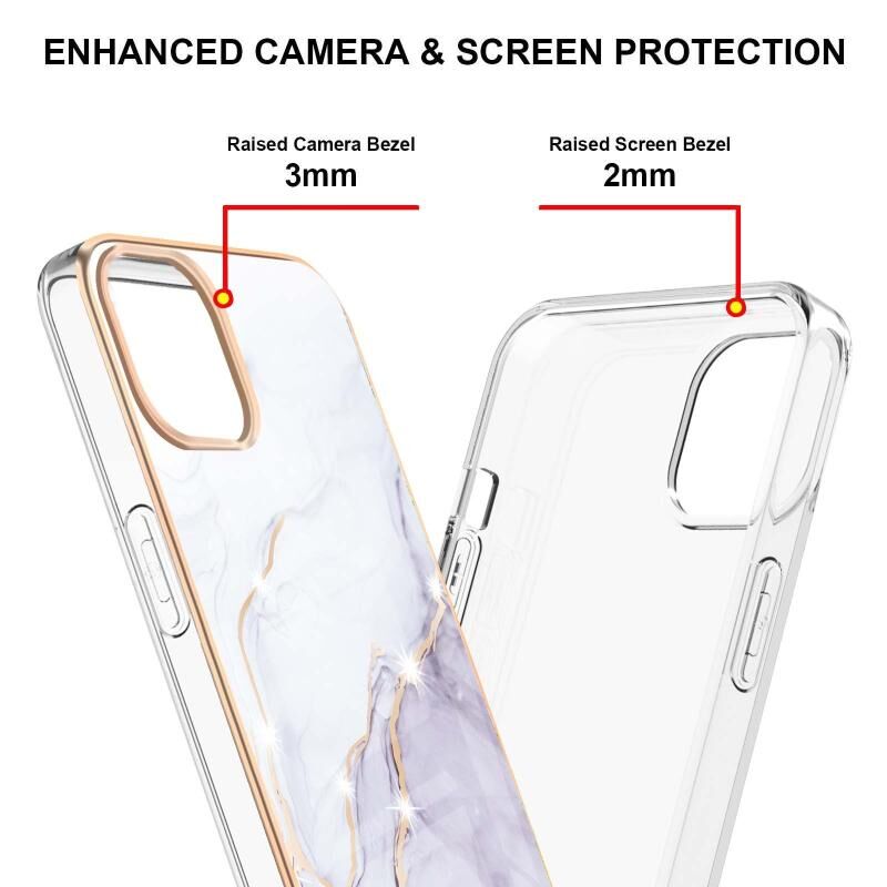 For iPhone 13 Pro Electroplating Marble Pattern Dual-side IMD TPU Shockproof Case (White 006)